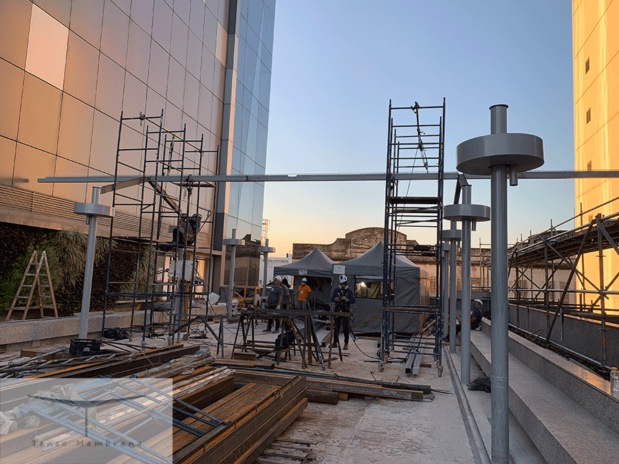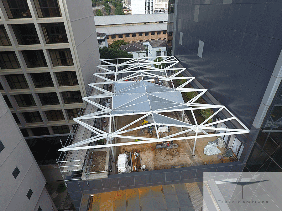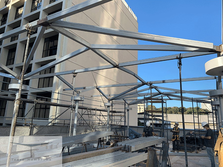 Serviço: projeto executivo, fornecimento e instalação da estrutura e da membrana