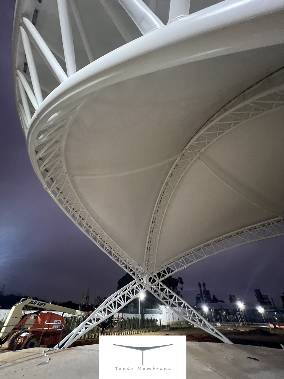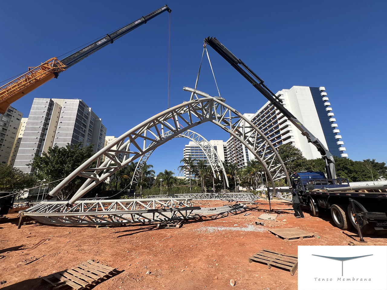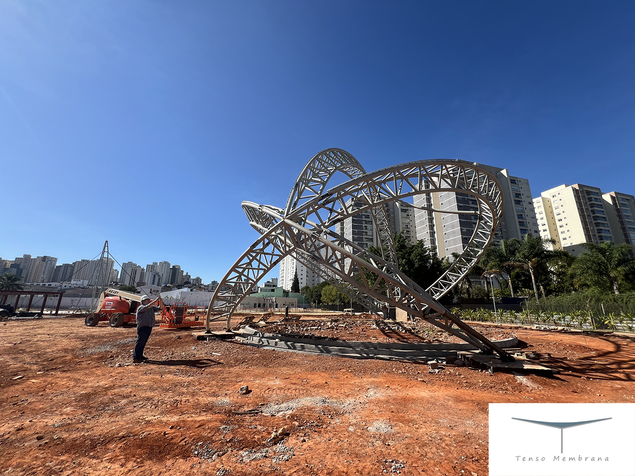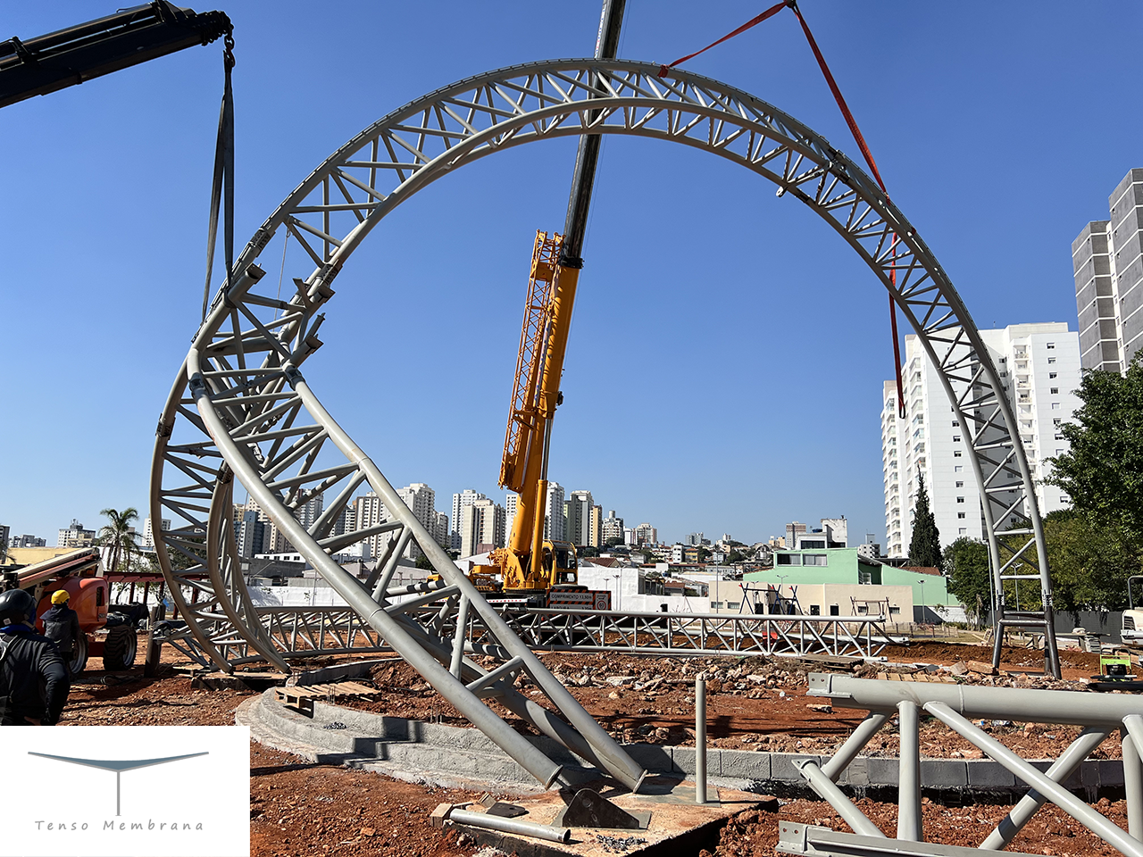 Cobertura tensionada executada no novo Parque Elis Regina, em São Caetano do Sul (SP), combinando proteção, design inovador e amplo vão livre para eventos e apresentações.